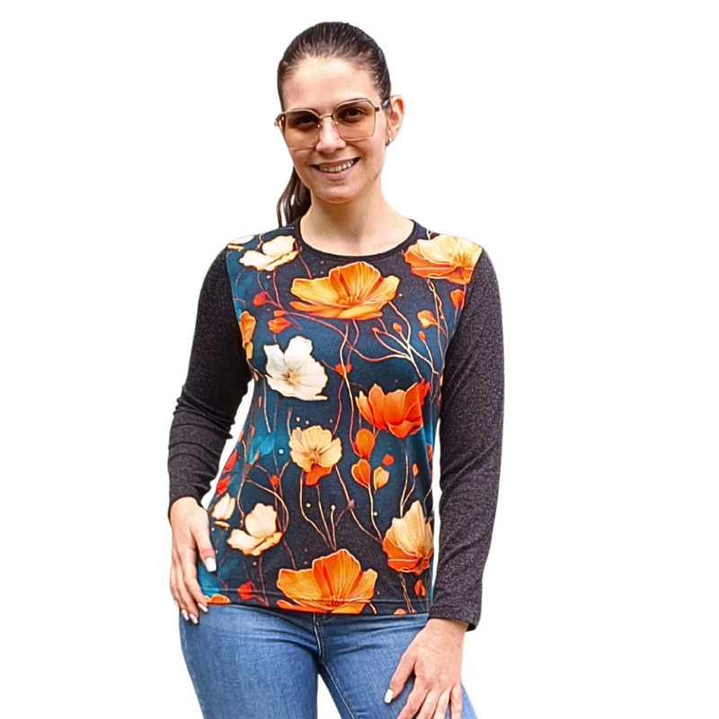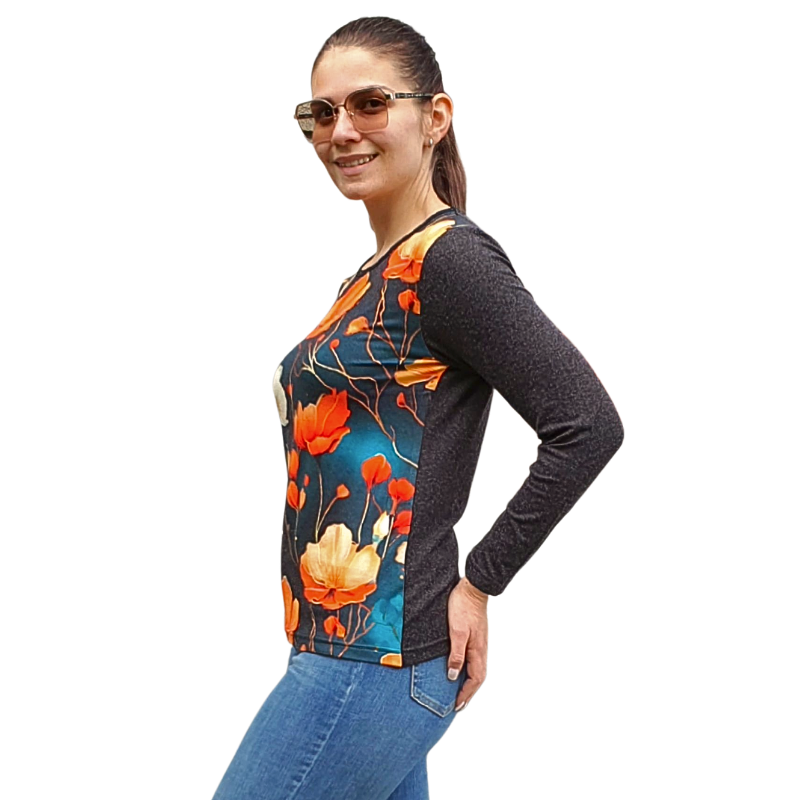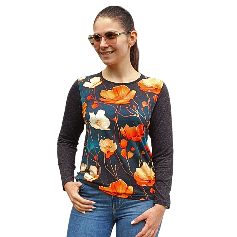 Блуза модел АНЕЛИЯ – ангора, ръкави и гръб в цвят графит. Съчетание от комфорт, стил и уникален дизайн.   Характеристики: • Материя:  мека, топла и нежна към кожата • Дизайн: красиви, абстрактни орнаменти в свежи цветове • Ръкави: Контрастни тъмни ръкави, които подчертават визията и добавят елегантност • Кройка: Свободна и удобна, подходяща както за ежедневието, така и за по-специални поводи • Подходяща за сезон есен-зима • Лесна за съчетаване с дънки, панталони или пола • Изработена с внимание към детайла и качеството