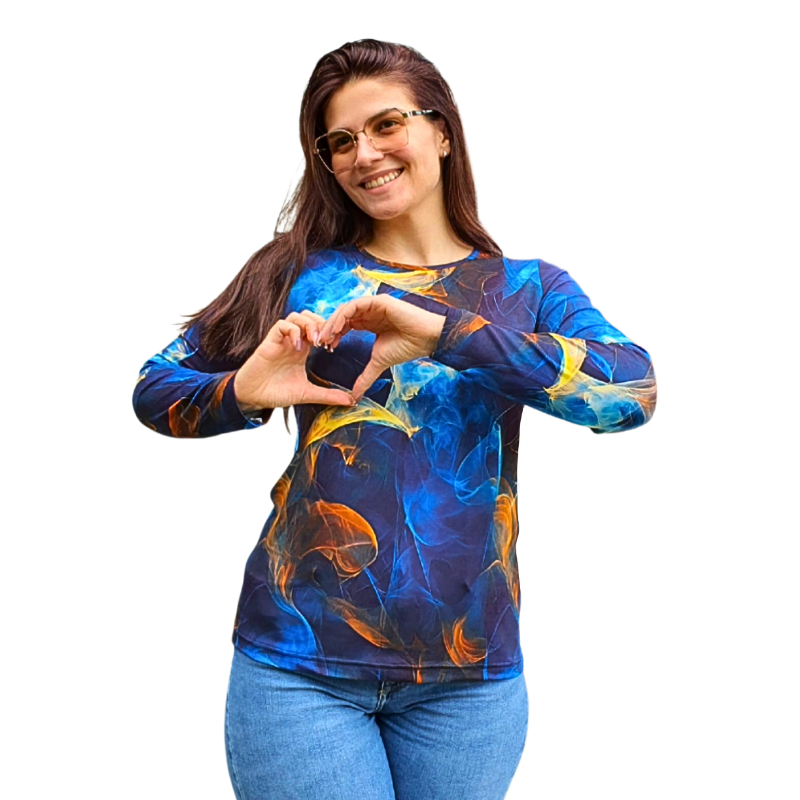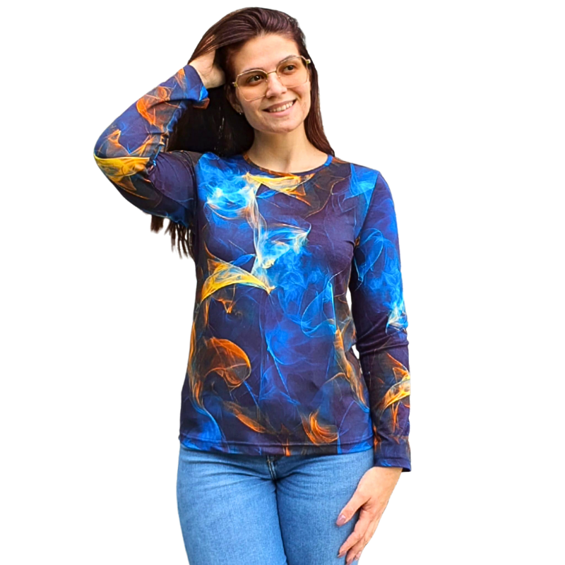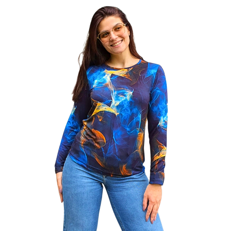 Блуза АНЕЛИЯ дълъг ръкав, десен Синя мъгла, код- 8227