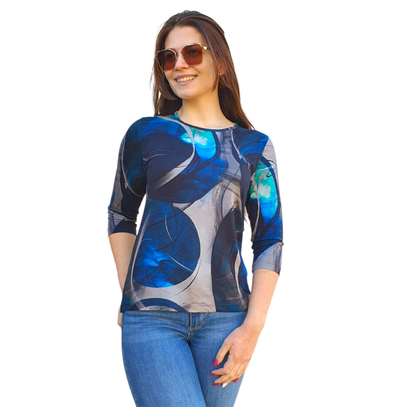 Блуза АНЕЛИЯ с 3/4 ръкав десен “ЛУННО ЗАТЪМНЕНИЕ”, код – 8287