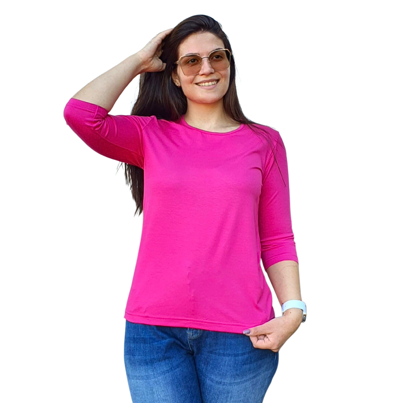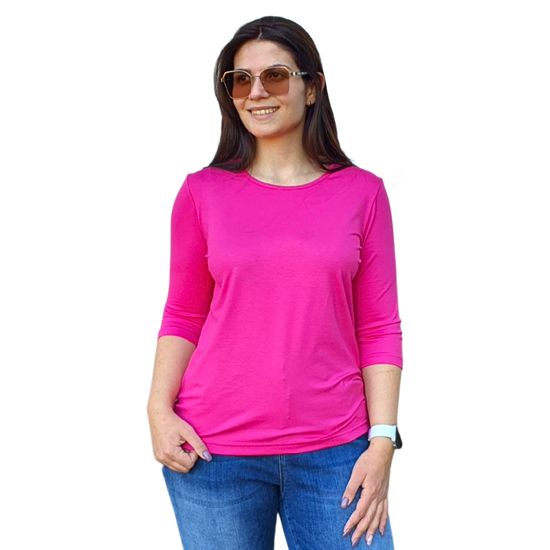Блуза „Анелия“ с 3/4 ръкав, свободен силует в ярък цикламен нюанс