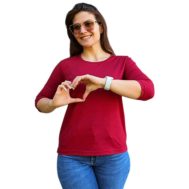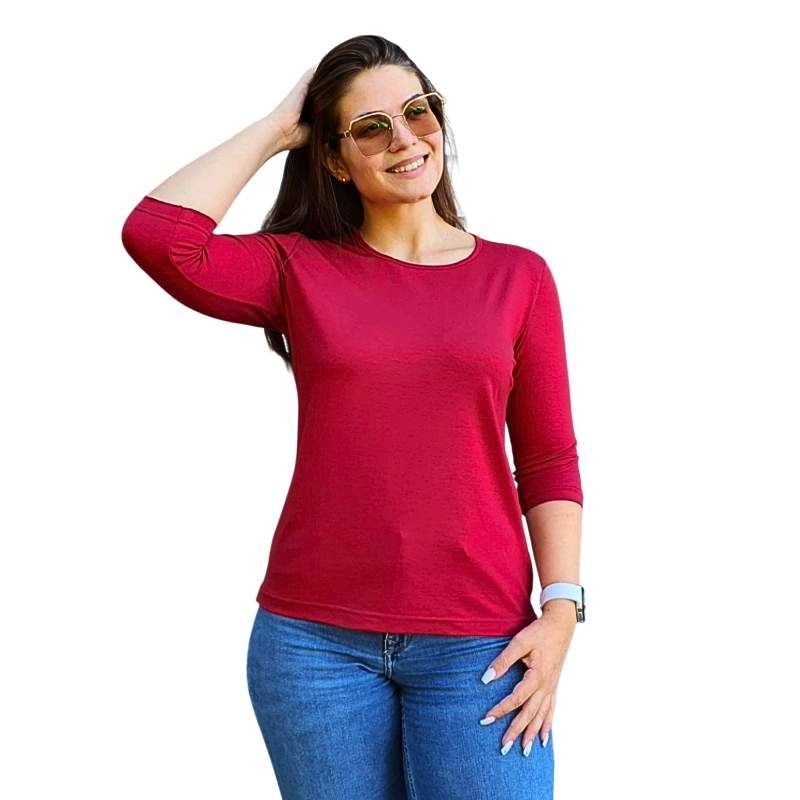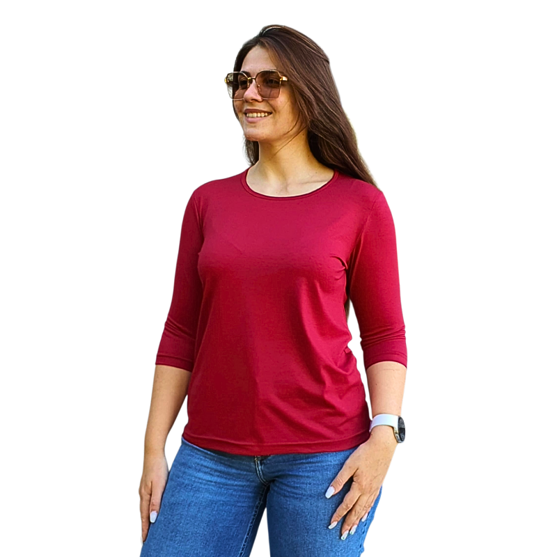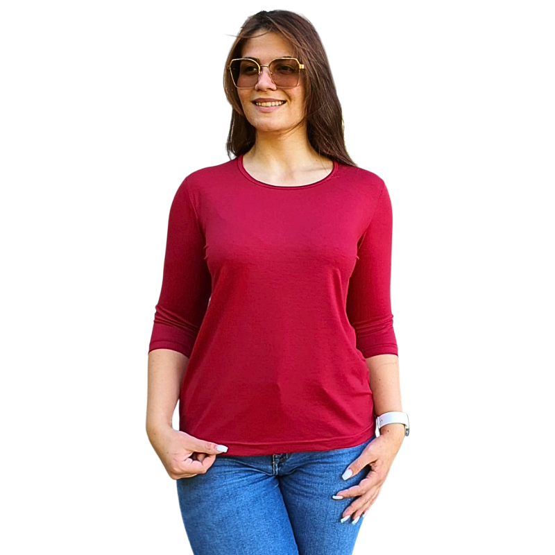 Едноцветна блуза модел АНЕЛИЯ –  МАЛИНА Модел, който съчетава комфорт, стил и класа. • Ръкав: ¾  – идеален за преходните сезони и за стилен силует • Материя: Дишаща и приятна на допир – подходяща както за ежедневието, така и за специални поводи • Кройка: Свободна, права – осигурява комфорт и свобода на движение • Подходяща както за офис визия, така и за вечерна разходка • Лесна за съчетаване с дънки, панталони или пола • Универсален модел, който подчертава индивидуалния стил