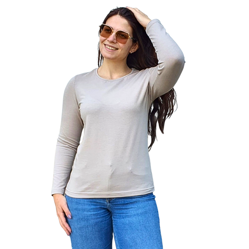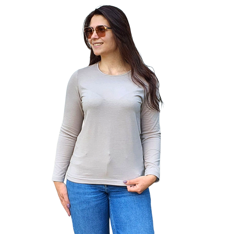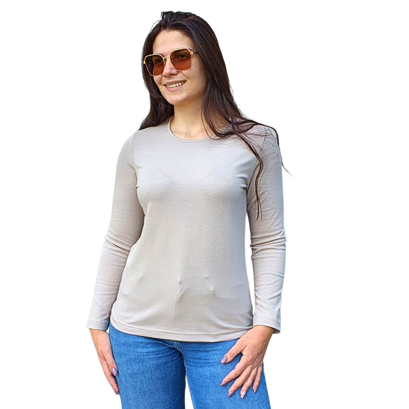 Блуза „Анелия“ с дълъг ръкав, естествена материя – памук/еластан и свободен силует в прекрасен нюанс на бежавото
