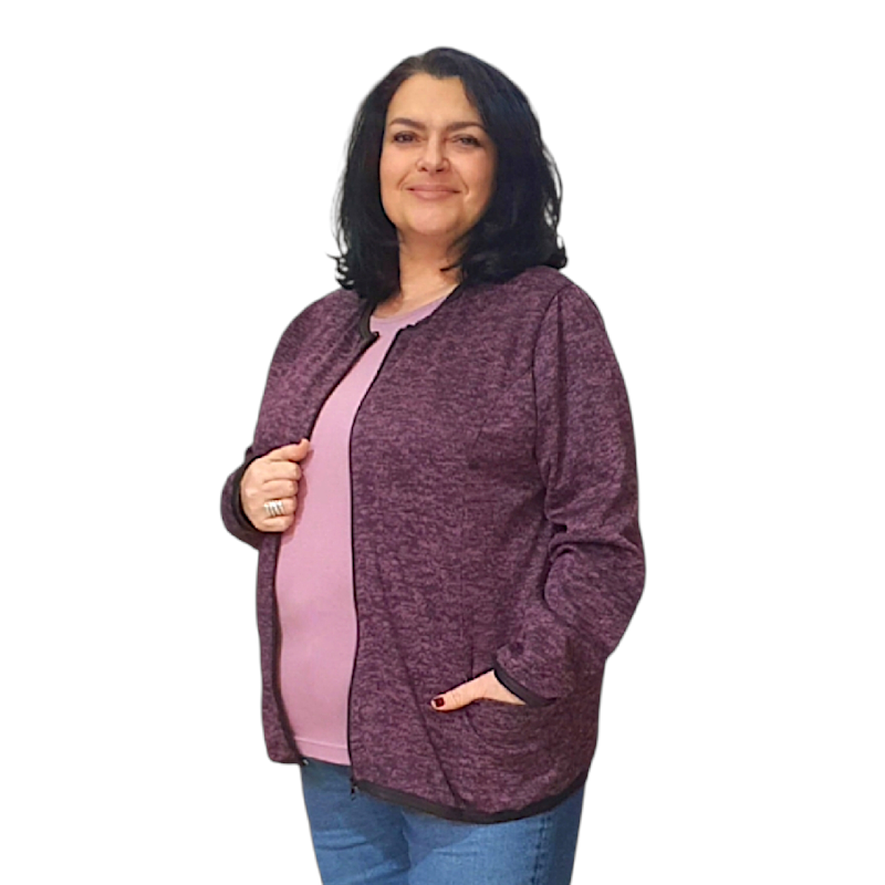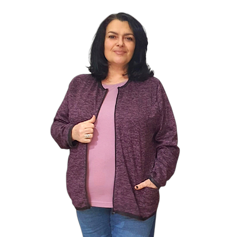 Жилетка с цип и джобове – модел НЕДА, цвят тъмно лилаво Открийте комфорта и стилната непринуденост с нашата жилетка НЕДА – идеалният избор за всяка жена, която цени удобството, без да прави компромис с визията си. Характеристики: • Цвят: Елегантно тъмно лилаво – универсален и лесен за съчетаване • Дизайн: Изчистен силует с цип по цялата дължина и два практични джоба • Кройка: Права и удобна, подходяща както за разходка, така и за работа • Комбинации: Перфектна с дънки, спортен панталон или пола за по-елегантна визия Материя: