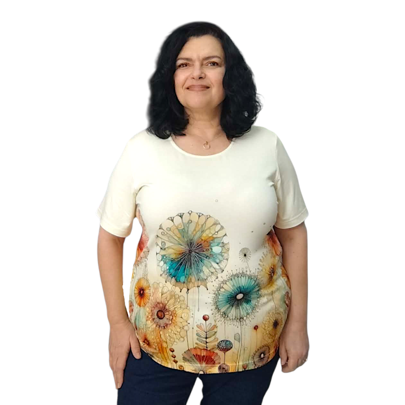 Изключително свежа блуза, с интересна щампа, която придава оригинална визия. Подходяща е за ежедневието, за разходки с приятели, за офиса благодарение на страхотния си външен вид и удобната кройка.
