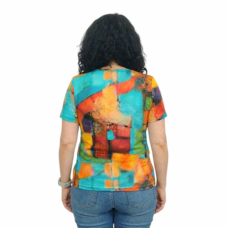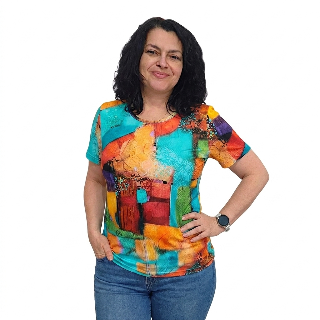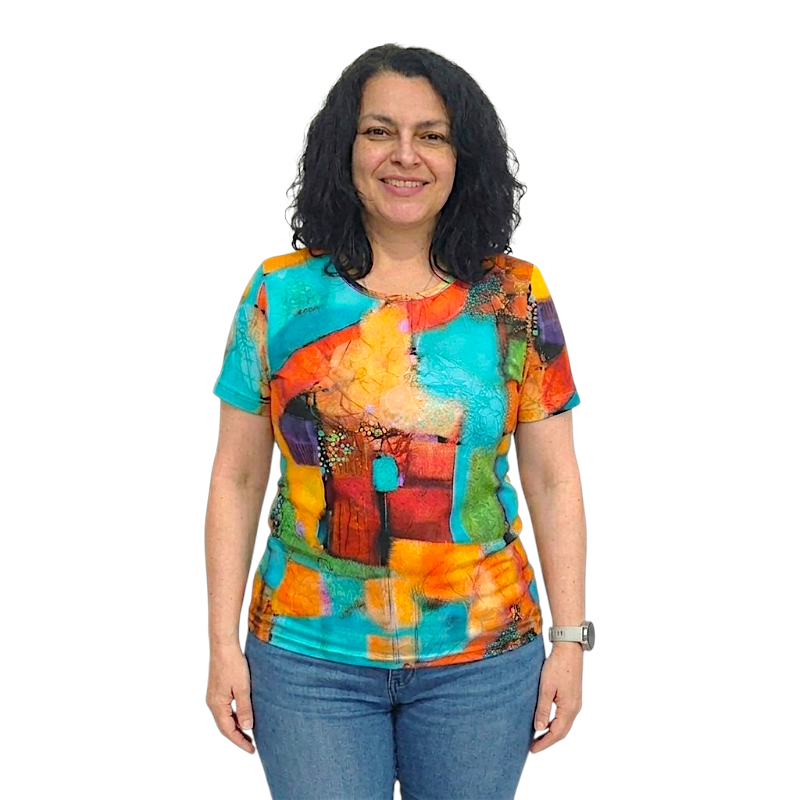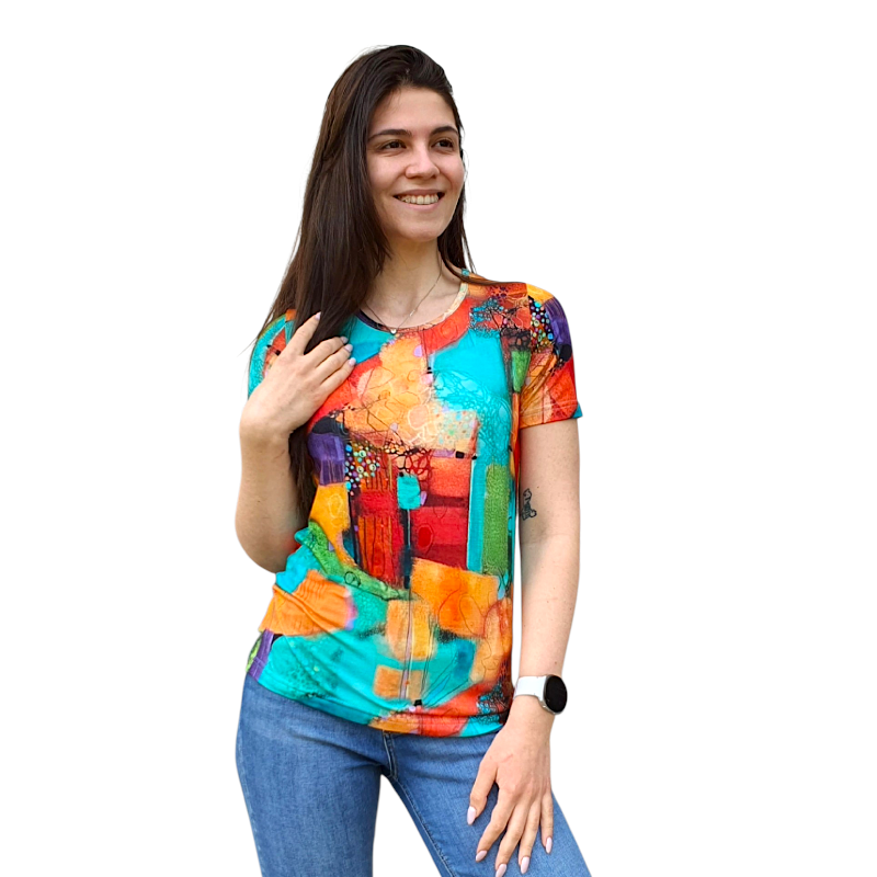 Изключително свежа блуза, с интересна, екзотична щампа, която придава оригинална визия. Подходяща е за ежедневието, за разходки с приятели, за офиса благодарение на страхотния си външен вид и удобната кройка.