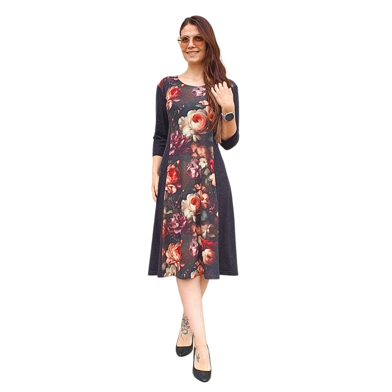 Рокля до коляното модел “КАТЯ” ангора с 3/4 ръкав в десен “РЕНЕСАНС” код – 8275