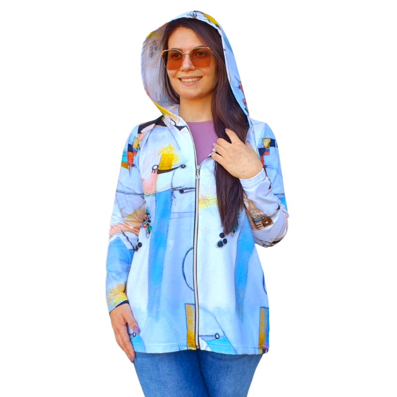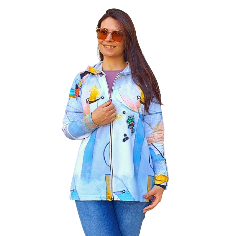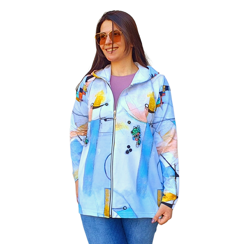 Нашият суитчър е перфектното съчетание между модерна визия и удобство. Със своя уникален абстрактен десен и леко удължен силует, той придава свеж и артистичен акцент на всяка визия. ✔ Подходящ за ежедневието, разходки и пътувания ✔ Изработен от мека вата Състав – памук/еластан ✔ Практичен цип за лесно обличане ✔ Универсален модел, който се комбинира чудесно с дънки, тениска или топ. Подходящ за променливите есенни и пролетни дни. Добавете малко цвят и настроение към гардероба си с този красив и удобен суитчър!