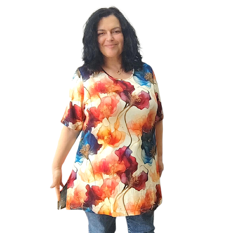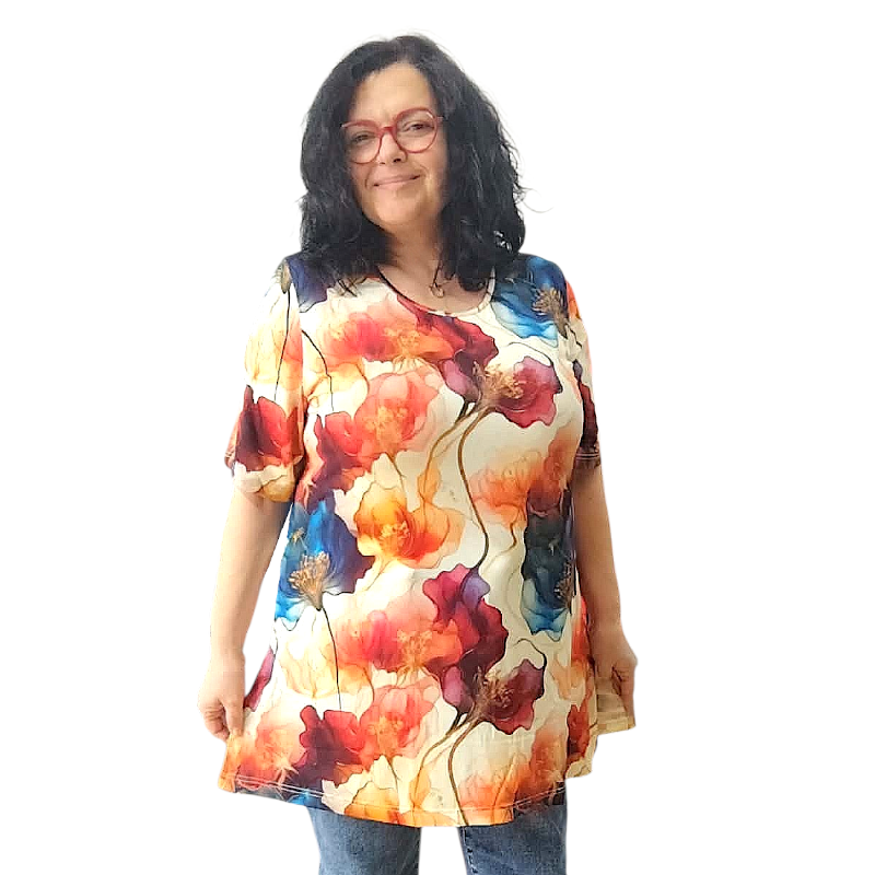 Туника “Ани” има класическа, трапецовидна кройка и цепки.