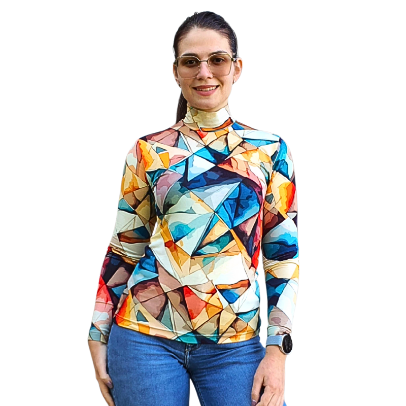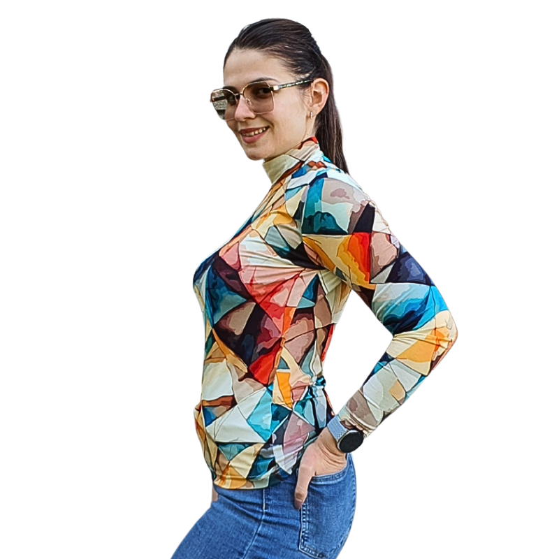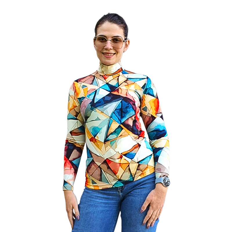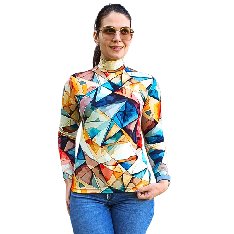 Вталено полу поло с дълъг ръкав, десен ЦВЕТНА ГЕОМЕТРИЯ – код 8237