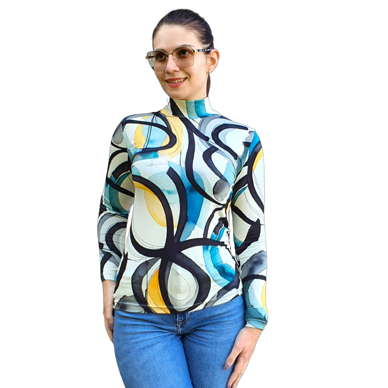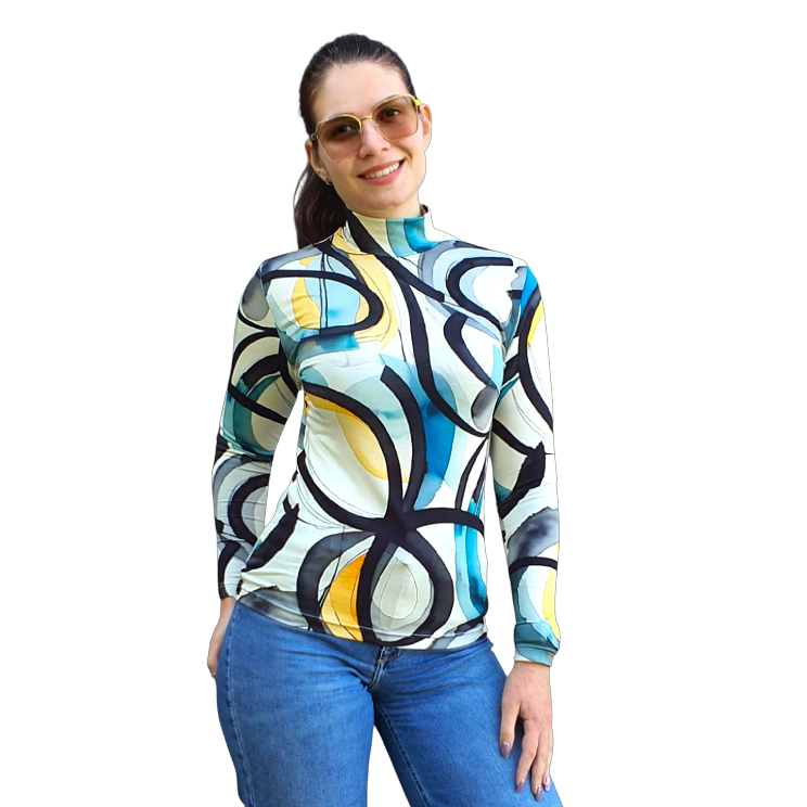 Вталено полу поло с дълъг ръкав, десен КОНТРАСТНИ ЛИНИИ – код 8239